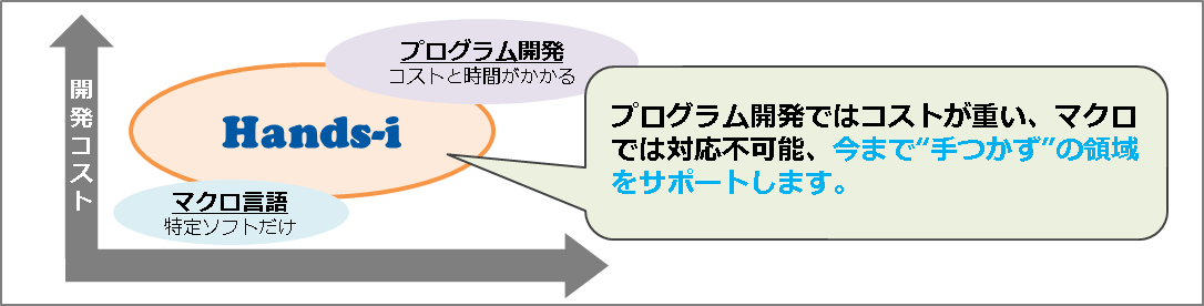 ③ コアから全てを日本企業が製造・所有しており、細かな製品の仕様変更などにも柔軟に対応できる④ 開発(業務の自動化)はメーカー(EYES HANDS社)のフルサポートを受ける事ができる⑤ 導入後のサポートが充実、自動化プロセスやメンテナンスも自動化(外部化)が可能